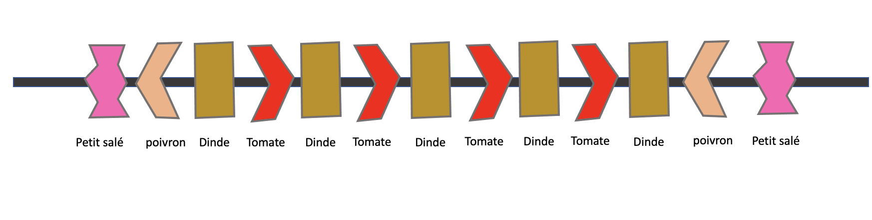 dans l'ordre, composition de la brochette :